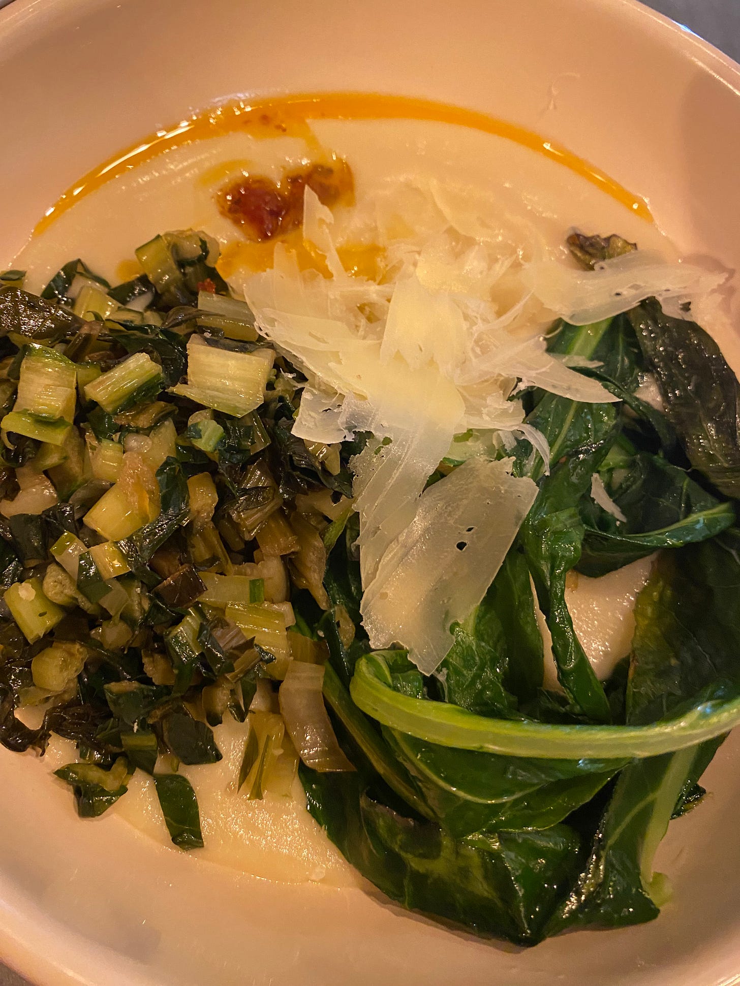 The advertised broad bean, chicory and caciocavallo - a stretched curd cheese from the South of Italy - is actually a fava purée (dried broad beans), spinach and puntarelle stems (also known as Catalonian chicory). The menu isn’t wrong, just my expectation of the ingredients lost in translation. It doesn’t matter either way. The dish is both earthy and deeply satisfying.